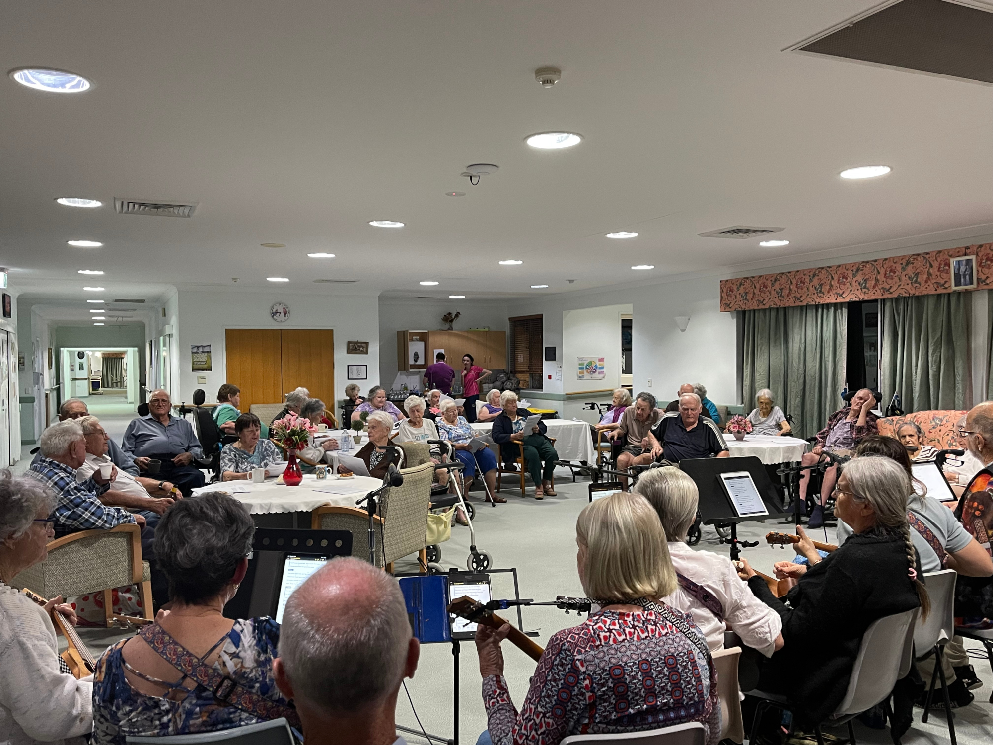 GAPPS Ukulele group goes to Gunther Aged Care Facility on the first Thursday of each month to entertain the residents. On this Thursday, the 6th of October, 2022, we were pleased to have a visit, at great expense of the management, from Jacko.