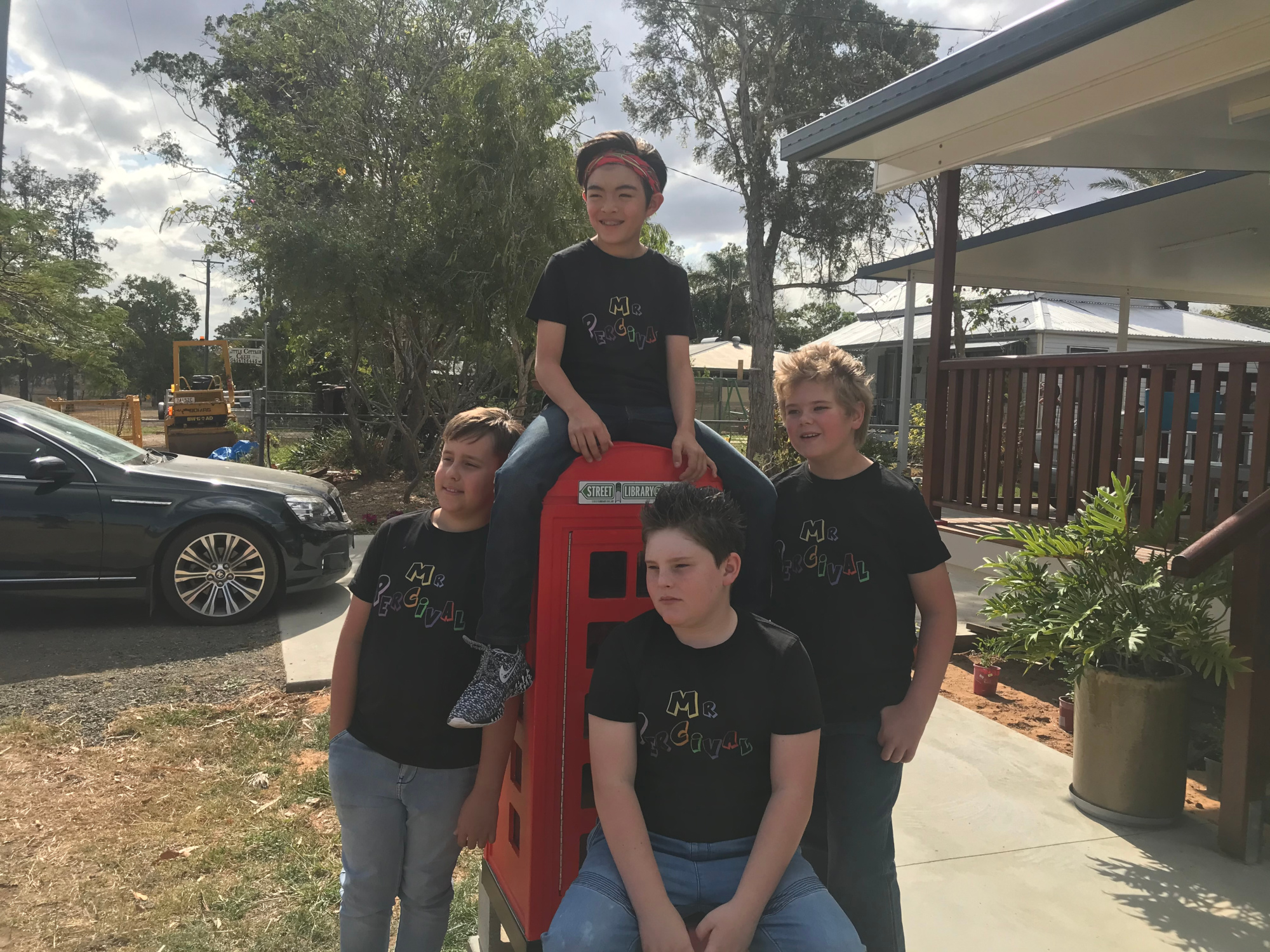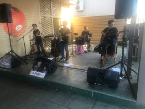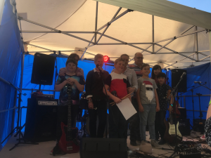 They worked hard, without a drummer at this stage and made it on to the stage (at 9am – not a good time for musicians). They were hoping to have one of the adults who played drums in town to come in and support the boys but by the agreed time, he hadn’t turned up. Michael had to go and wake him up and encourage him to get to the stage in time to make things right for Mr Percival.