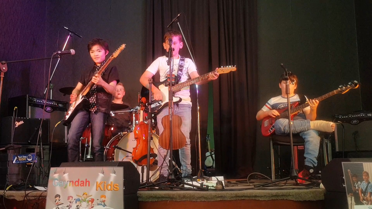 It didn’t take long for another boy from the class at St Joey’s to decided he wanted to learn to play the drums and join the band. Angus Parr thought it was time for him to join the boys and complet the standard band line up and his first gig was a performance on June 6th, 2019 in the school gymnasium for the assembled school students and staff.