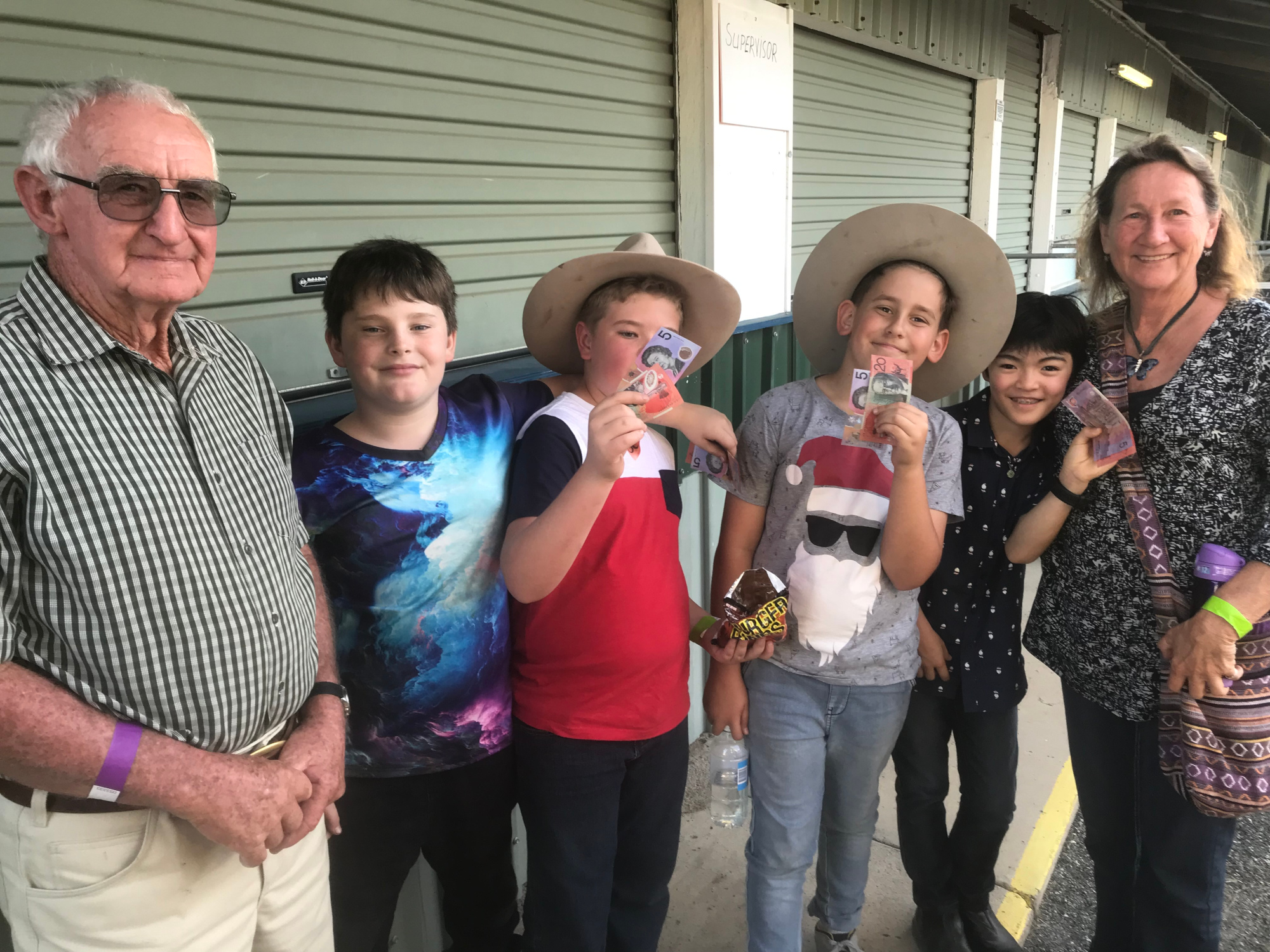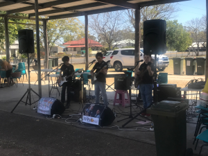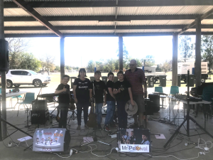 The next gig for Mr Percival was very exciting for the boys because they were paid – their first paid gig. Des Robinson organised for the band to travel to Mount Perry on 27th of July, 2019 to play at a function which was held at the local Showgrounds. Des was pleased to have the boys and their parents there and as can be seen from the photo, they were keen to receive the payment.